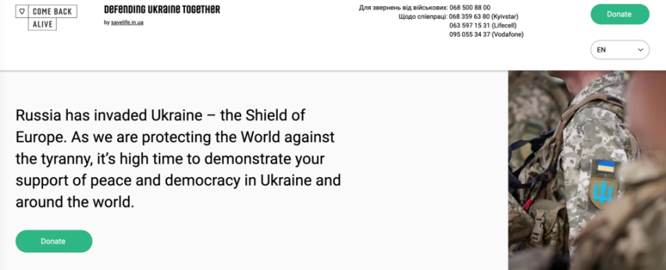 Come Back Alive成立于 2014 年,是一家总部位于乌克兰基辅的志愿者组织,他们以提供医疗和安全工具包来支持乌克兰武装部队为使命,其中也不乏武器装备