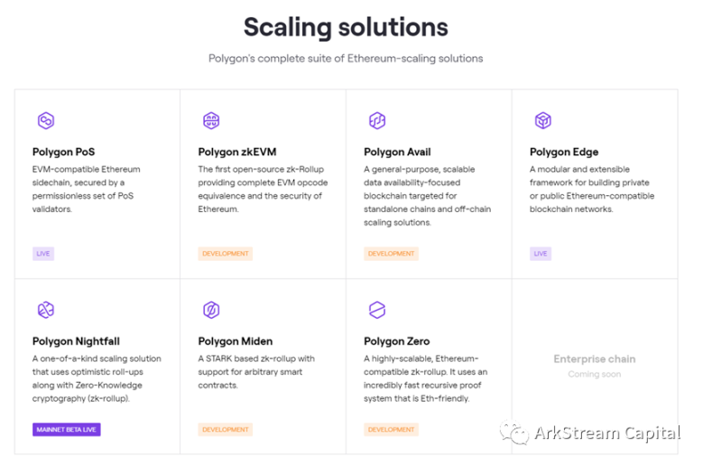 Polygon(MATIC):最开始提出的时候是以太坊的侧链,在转变策略后,Polygon 并购了多个 L2 解决方案,开始进行大范围的扩容探索,这里我们将对其中几个涉及 zk 的 L2 方案进行简单的介绍。