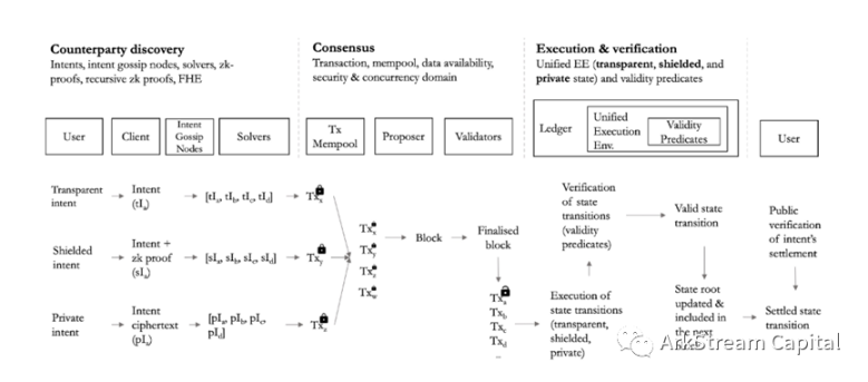 Figure21: The lifecycle of a transparent, shielded, and private intent inthe Anoma architecture