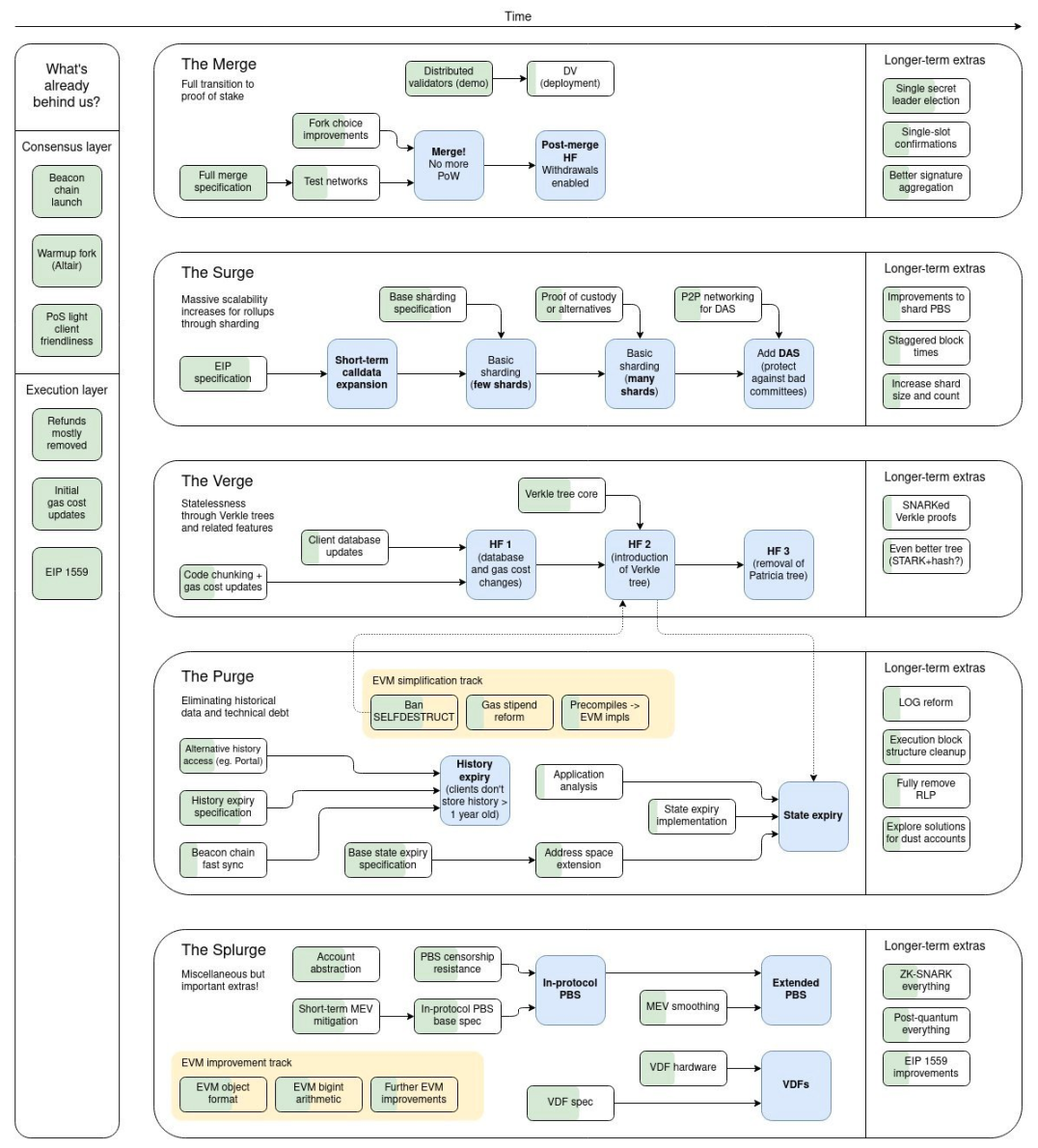 如果粗暴地划分,ETH 可以分为两层:共识层和执行层。前者类似于企业中的领导,后者类似于企业中的员工。空降一批新领导(PoS 节点),大换血掉之前的老领导(PoW 矿工节点),但是员工(EVM)还是之前的员工,因为它们只负责执行。所以,作为用户,你感觉不到有什么区别。