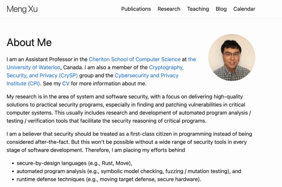 徐萌教授是 Move 的核心开发者,Move Prover 的主要作者之一。