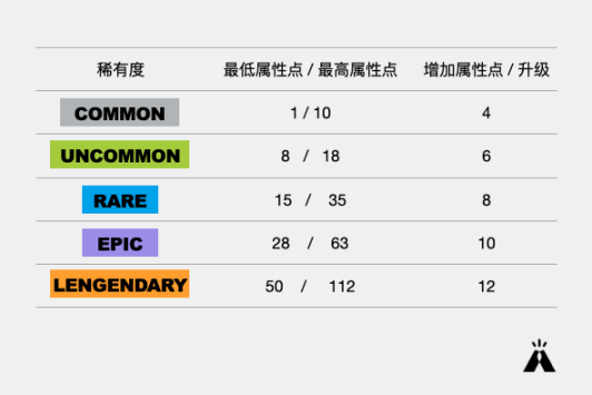 鞋子在这四个基础属性上有 base 值,通过销毁 GST 升级会获得属性点,玩家可自由将新增属性点添加至这 4 种属性,从而增强鞋子性能。想要获得更好的性能,首先要挑选 base 值高的鞋,其次靠升级增加属性点。从下图可以看出,品质越高的鞋,base 值越高,升级带来的新增属性点也越多。