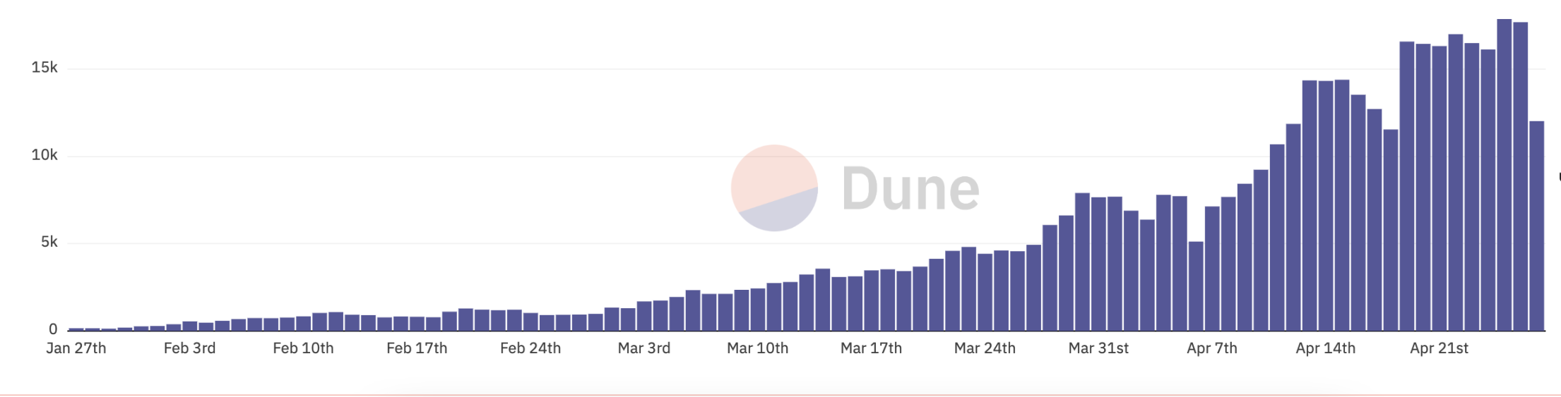 1)Dune 链上数据显示 3 月以来新增用户稳定增长,进入 4 月承爆发式增长。