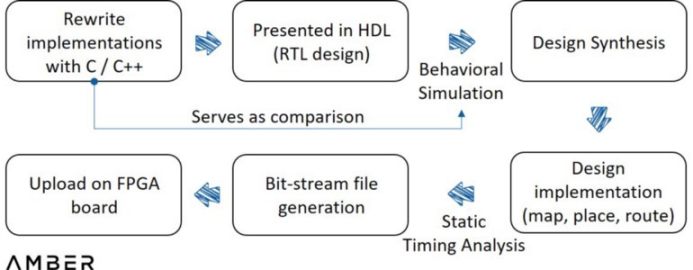 要在 FPGA 上实现 ZKP 加速,仍然需要几个步骤。首先,需要一个用 C/C++ 编写的特定证明系统的参考实现。然后,这个实现需要用 HDL(硬件描述语言)来描述,以便在高层次上描述数字逻辑电路。