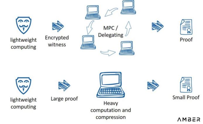 另一种方法是部分外包证明生成。Pratyush Mishra 在 ZK 峰会 7 期间介绍了这种方法。用户首先执行一些轻量级计算,然后向几个第三方提供公开声明和加密见证,这些第三方接管并完成其余的证明。按照这种方式,只要其中一方诚实,用户的隐私就不会被泄露。它结合了 ZK 协议和 MPC 使用的一些工具。或者,用户可以用带宽进行计算:首先生成一个大尺寸证明,将其发送给第三方,第三方将对其进行压缩并将其发布到链上。