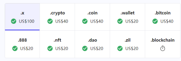 其中的 008,unstoppable 实行买断制,不像 ENS 和.bit 按年收费,玩的就是一锤子买卖,但是不搞年费制,未来谁维护系统运作呢?这项目方也是鬼才,发现稀有单词被很快消耗,那就不断增发新后缀,.888 .nft .crypto .dao ……都是其杰作。