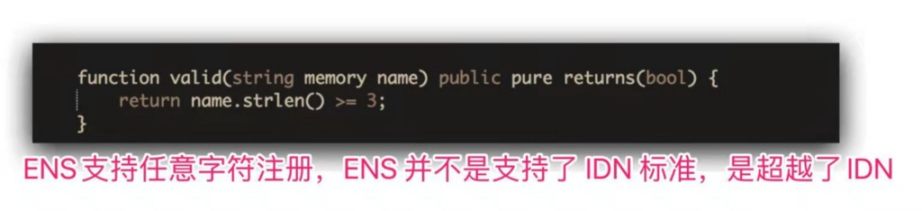 还有这副世界名画,来源自 ENS 的公开代码,翻译一下:ENS 对注册的限制只有一条 — — 大于等于三个字符即可。字符本身不做任何限制!这不是满足 IDN 标准,而是超越了 IDN 标准。