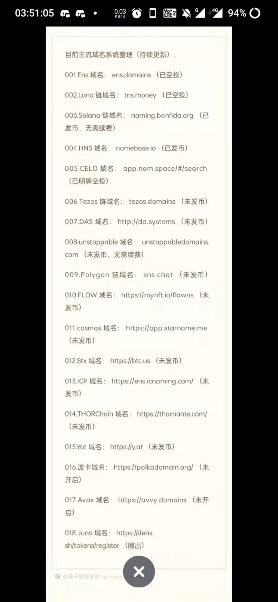 域名不是大饼屯着就行,其价值就看它能不能大规模落地,像.com 一样成为行业标准,深入人心。下面这张图里的项目,真心做事的最多 4,5 个,其余全 tm 是割韭菜的。(007,DAS 就是.bit)