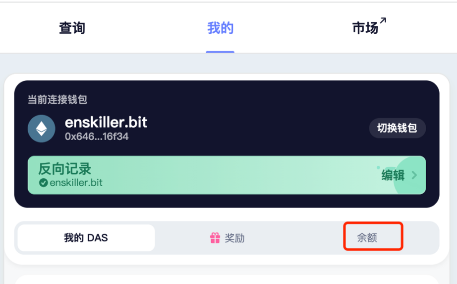 这里的余额既可以用于 DAS 的注册,也可以用于二级市场上购买你心仪的 DAS 账号。