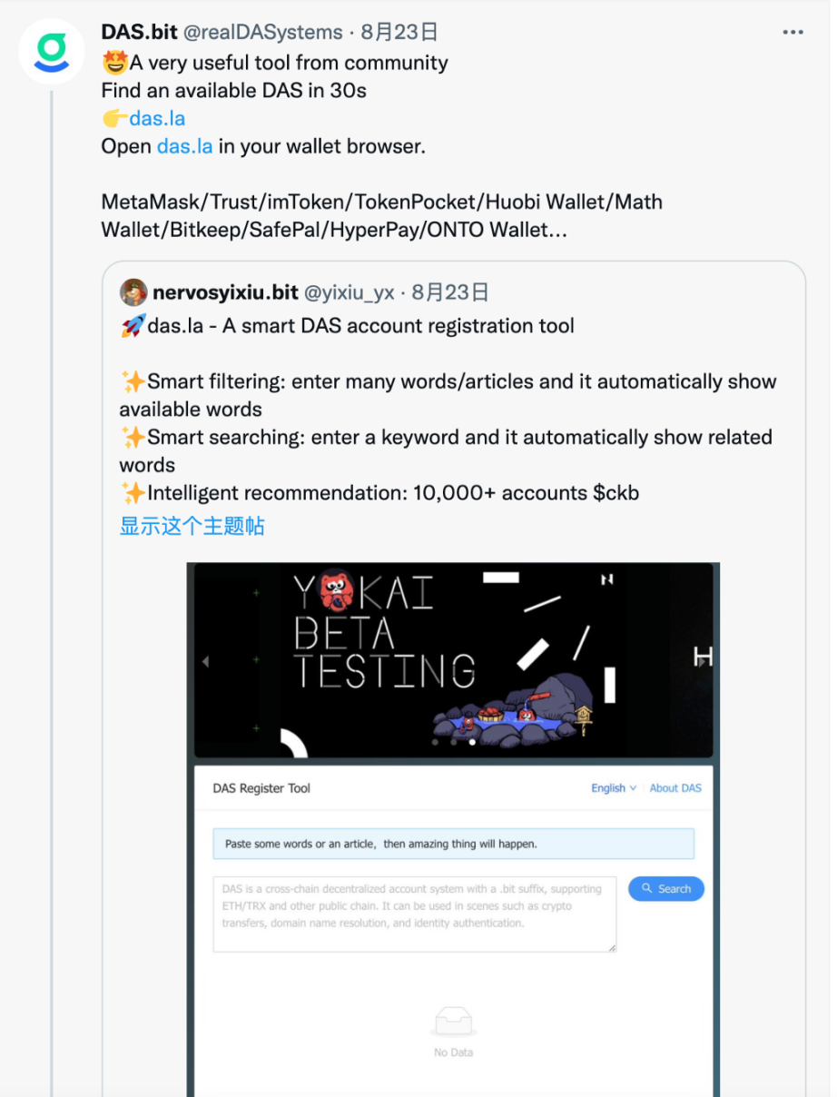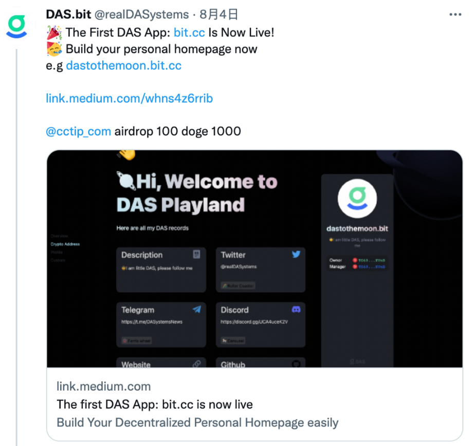 本文写于 2021 年 12 月 27 日,原作者:nervosyixiu.bit(一休哥),社区重要 builder,DAS 是.bit 的曾用名。