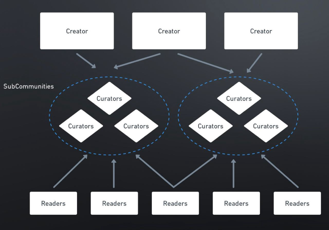 ReadON 设计了一个去中心化的推荐网络。不同的内容按内容主题划分为相应的社区。有此主题经验的用户将成为子社区的管理员。