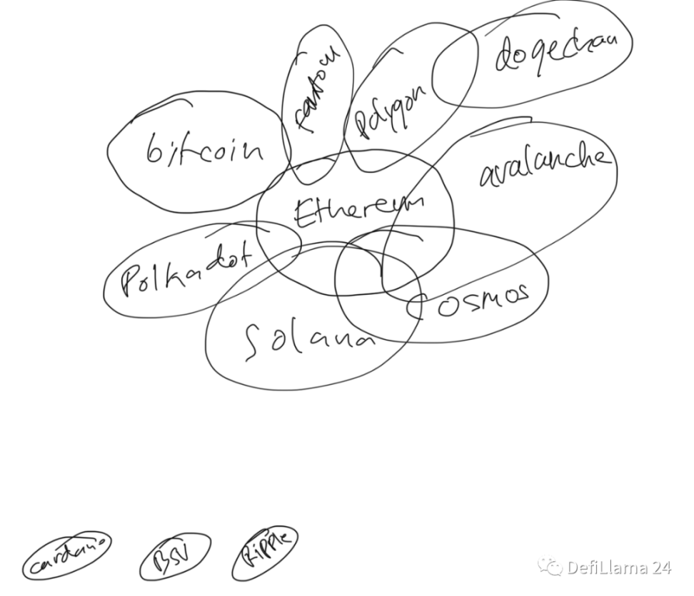 加密空间及其社区存在于一个总范围内。有组织、部门和子部门,每个部门都与至少另一个实体交织在一起并重叠。下面的思维图可以最好地描述这一点(请原谅我画的粗略 -,-).