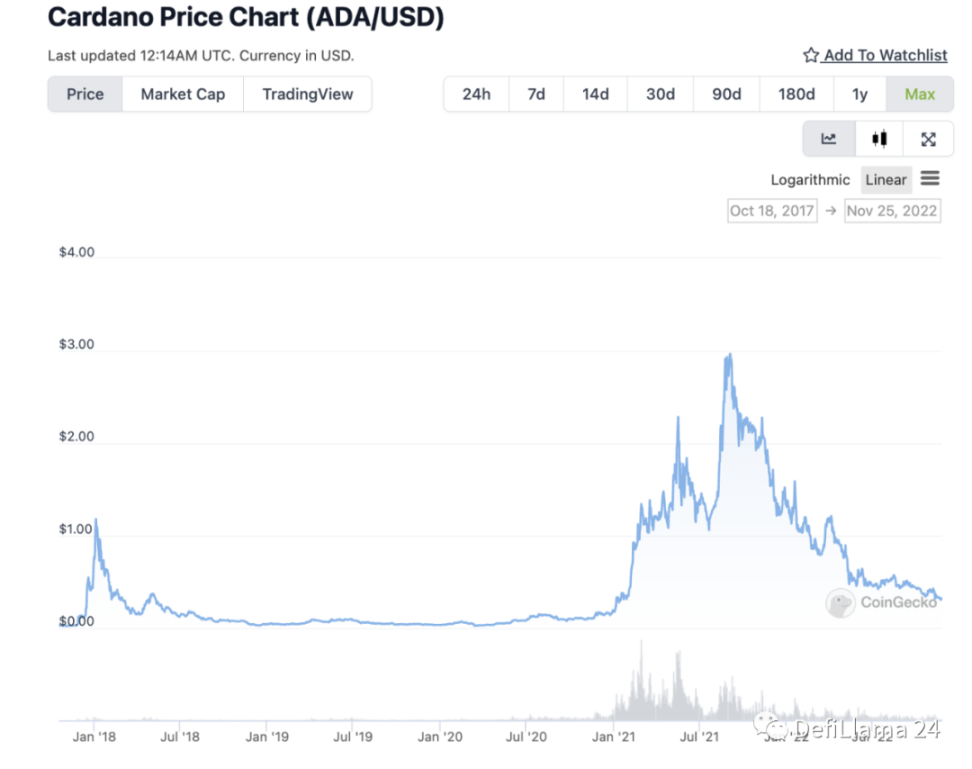 甚至没有人关心 Cardano,在 2021 年的牛市高峰期,ADA 已经处于熊市。