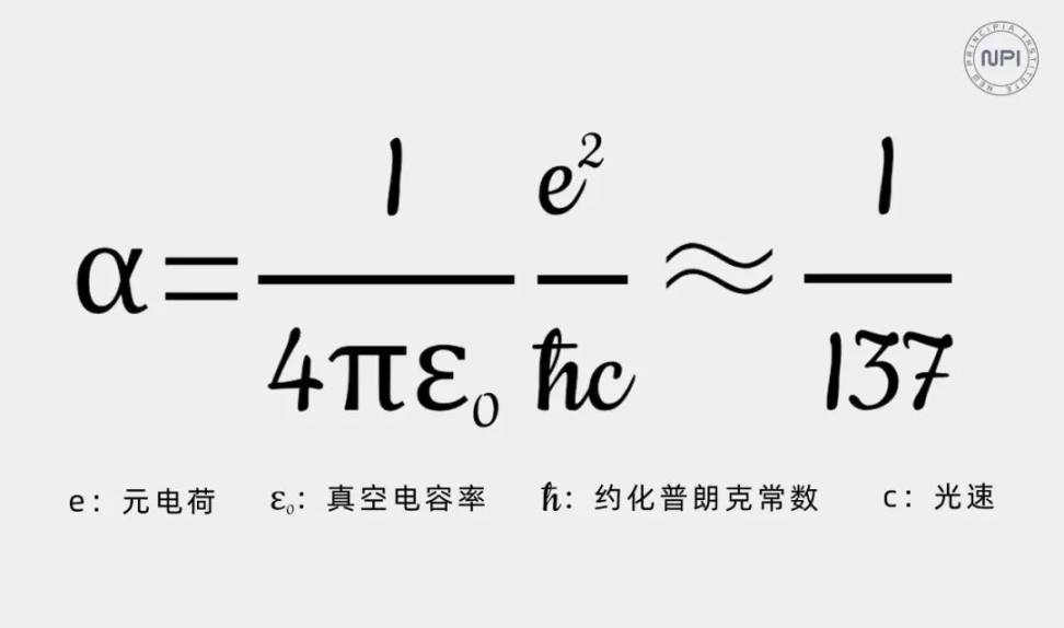 当物理学家提及 137 时,它所代表的其实是精细结构常数(用“α”表示)的倒数。精细结构常数是一个没有单位的无量纲常数,表示两个基本粒子之间电磁力的强度,它的定义如下: