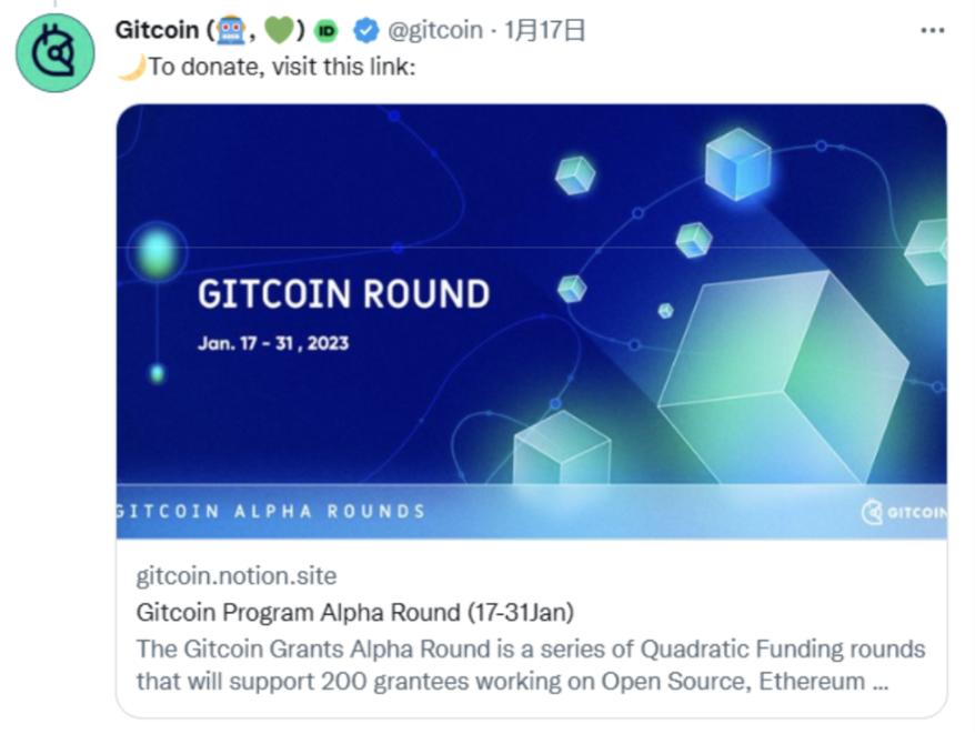 情报来源:https://twitter.com/gitcoin/status/1615322825086357504