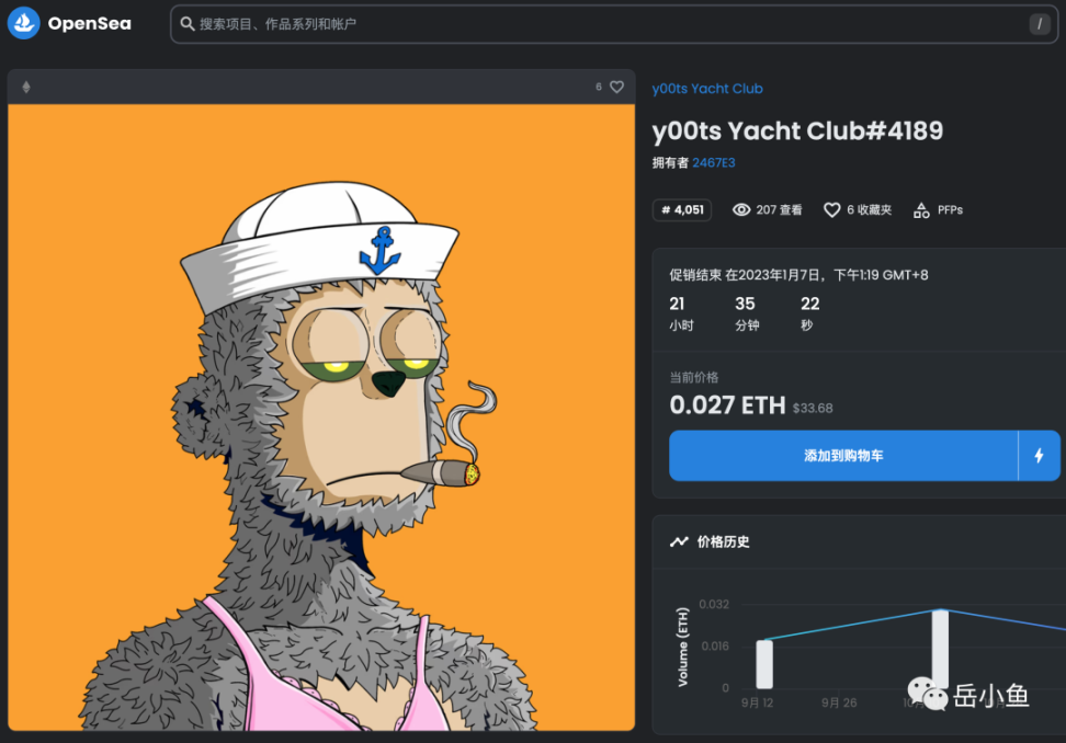 可是后来看到了热度排名很高的一个系列,也是猴子形象,其实就是山寨猴,所以自己就购买了一个,售价是 0.055ETH(60 美元),现在已经跌到了 30 美元。