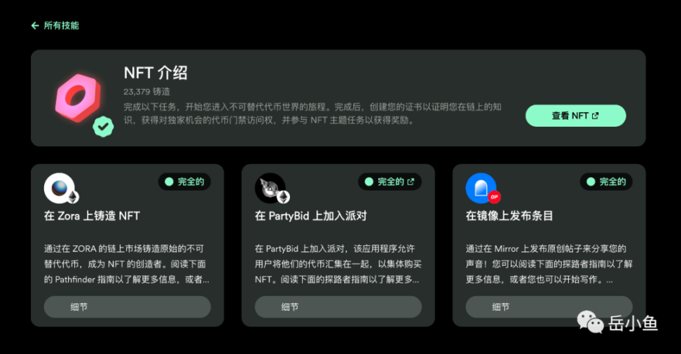这种任务 NFT 的机制是类似的,都是需要完成一些任务,体验 Web3 产品就可以获得 NFT。