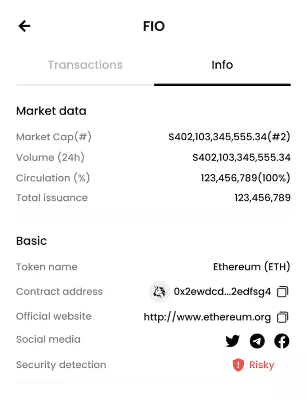 此外,用户也可查看任意代币的介绍页面,查看风险检测等级,是处于「有风险」还是「安全」。