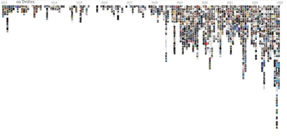 为了预估这个社交平台在马斯克的引导下将如何发展,近期美国媒体梳理了他近 20,000 条公开推文,并主要分析了马斯克近几年的帖子和他在过去十年中发布的图片,以及少量的马斯克所关注的推特用户。