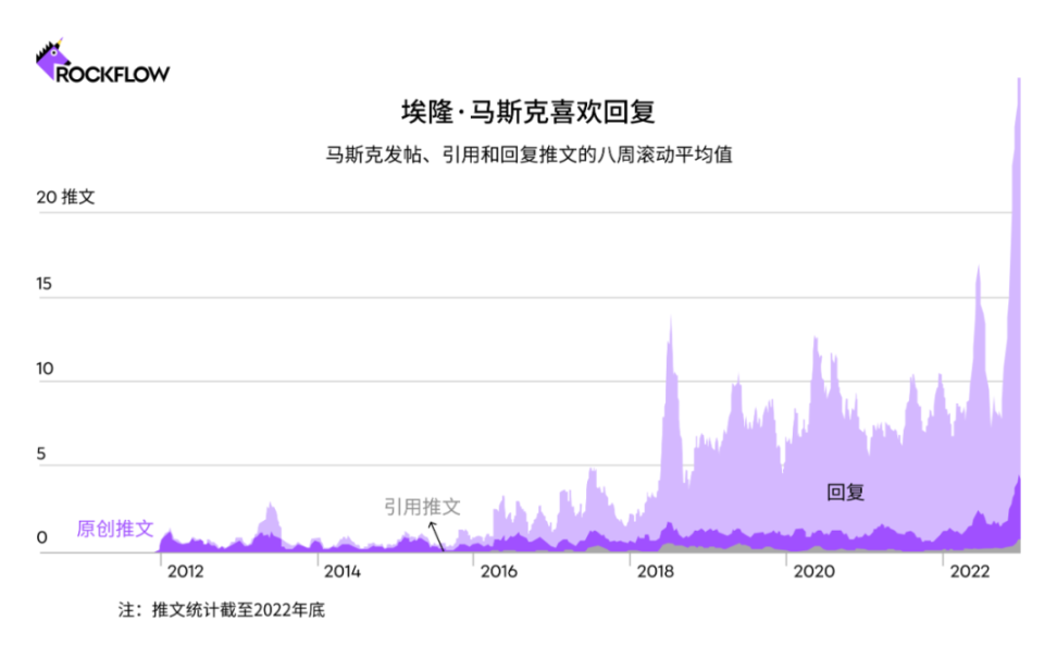可以看出,在马斯克一天的推文内容占比中,主要是由原创内容和回复推文的内容构成的,引用转发的推文较少。