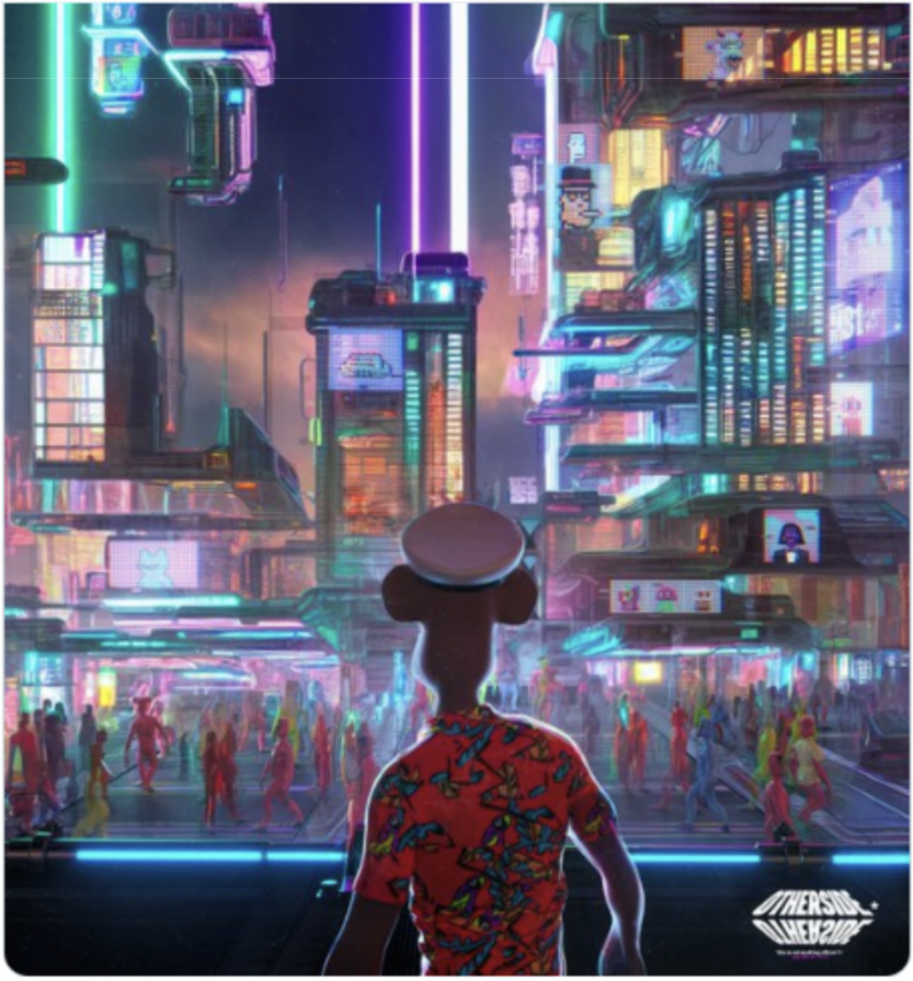 加密艺术家 Beeple 发布 Yuga Labs 元宇宙新作品“Otherside” 加密艺术家 Beeple 在社交媒体发布与 Yuga Labs 元宇宙相关的全新作品“Otherside”,其中展示了“无聊猿”BAYC 的吉祥物 Curtis 眺望未来城市,整个城镇的广告牌上都是各种 NFT,在 Beeple 对 The Otherside 作品的解释中,广告牌上的 NFT 项目包括 Cryptodickbutts、Mutant Apes、CoolCats、Nouns、World Of Women、Meebits、CryptoPunks 和 Toadz,大部分来自 Yuga Labs 在 2022 年 3 月第一部 Otherside 预告片中列出的 NFT 系列。 此前,Beeple 创作的 NFT 作品《Everydays: The First 5000 Days》以约 6930 万美元(42329.453 ETH)成功竞拍,创下迄今为止数字艺术拍卖最高记录。情报来源:https://twitter.com/beeple/status/1626851617621544961
