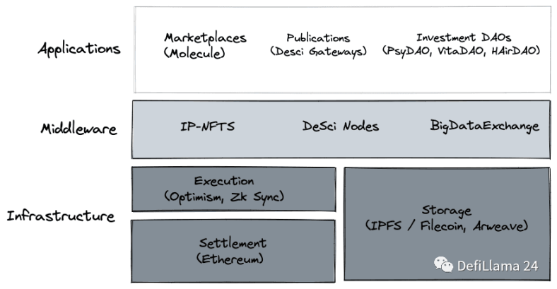 Cherry Crypto 最近在 DeSci 堆栈(https://www.cherry.xyz/writing/the-emerging-desci-stack)上发表了一篇文章,看起来是这样的: