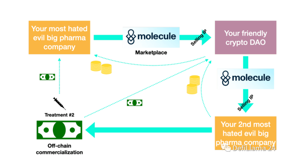 大药厂是 IP 的鼻祖。最终买家是另一家制药公司,但商业价值会回馈给拥有部分知识产权 / 特许权使用费的每个人。