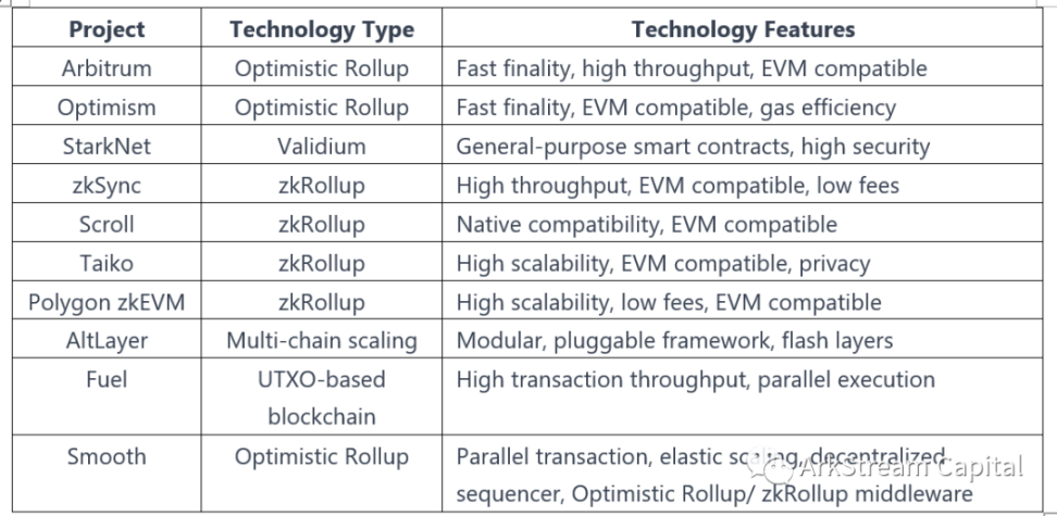 在没有真正提出执行层产品之前,我们经常听到一个词:以太坊杀手。这说明区块链用户对于交易吞吐量、交易速度和交易成本等方面的性能需求和以太坊提供的现状存在明显的不匹配情况。为此,不少新公链尝试从单体区块链本身的交易结构、区块设计、共识机制和网络广播机制进行探索和研究,构造全新的高性能公链,去实现海量交易吞吐量、快速交易速度和便宜的交易成本。与此同时,以太坊的生态对于各种各样的技术和产品方案都进行探索研发。时至今日,以 Rollup 为主体方案 Layer2 路线占据主导地位,其中欺诈证明的乐观 Rollup 的 Optimism 和 Arbitrum 不管在项目构建、用户吸引和留存都陆续超越其他 EVM 兼容的新公链,此外,以零知识证明为主的 ZKRollup(Starknet、Hermez、zkSync、Scroll、Taiko 等)、以并行交易为主的 Fuel,AltLayer、Smooth 等也在各自的方案领域继续前进。