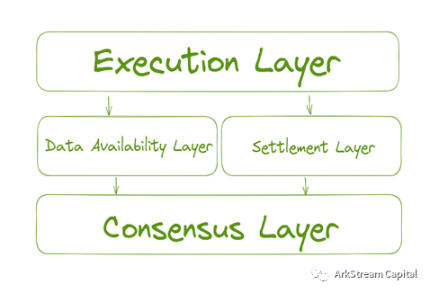 由于结算层涉及到不同执行层的交易有效性证明设计,例如乐观欺诈证明和零知识证明,为此,我们暂不做进一步的理解。下面,我们将直接了解模块化区块链常说的执行层、数据可用层、共识层这三个模块,着重在它们发展的背景,解决的问题,以及它们当前的发展情况和面临的挑战。