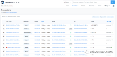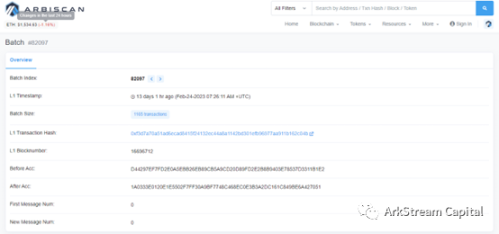 至于结算的交易 Arbitrum 的区块浏览器并没有做很好的一一对联,此处我们直接通 Arbitrum 官网部署在以太坊的智能合约入手,分析 Delayed Inbox 合约涉及到结算相关的函数:sendL1FundedContractTransaction,当结算出现分歧的时候调用;当结算没有分歧的时候调用 Outbox 合约的 updateSendRoot。相关合约地址请查阅:https://developer.arbitrum.io/useful-addresses。