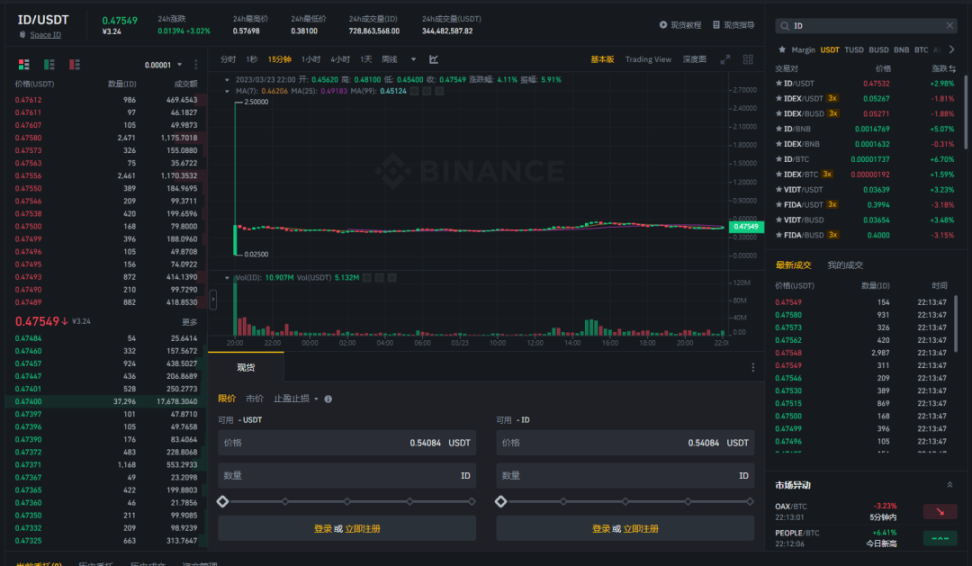 而自该 Launchpad 公告发布以来, BNB 价格从低点的 \(304,短时拉升至 \)346,与此同时, Space ID(\(ID) 作为 Binance 2023 年开年的首个 Launchpad 项目,在 22 日以 \)0.025 的价格开盘后,最高价格达到了 \(2.5,目前价格稳定在 \)0.47 左右。