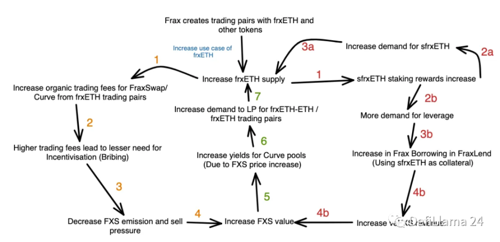 一旦 frxETH 与代币配对,上述飞轮就会发挥作用,从而对 Frax 生态系统产生净积极影响。