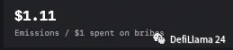 Convex AMO 和农业飞轮:Frax 的投资者 AMO 拥有 355 万个 CVX 代币,约占所有锁定 CVX 代币的 6.5%。这使得 FRAX 能够将 CRV 激励措施引导至 Frax 选定的资金池,并加深 FRAX 和任何以 FRAX 计价的交易对的流动性。由于 Frax 拥有 Frax-3CRV 和 FRAXBP 矿池的大部分,他们获得了发出的 CRV 和 CVX 奖励。Frax 还贿赂 vlCVX 持有者,因为每 1 美元的投票奖励会带来 1.11 美元(截至 2023 年 12 月 2 日)的排放量。由于其 POL 和 AMO,这是只有 Frax 才能实现的飞轮。