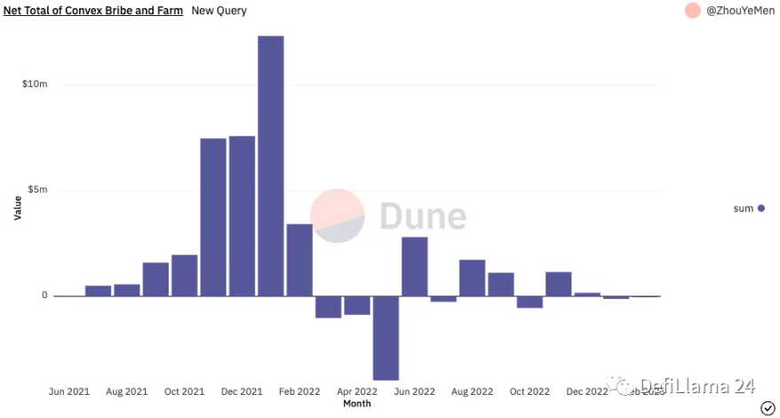 Frax 的净收益高度依赖于 CRV、CVX 和 FXS 的价格。在 2021 年 1 月这 3 个代币的价格达到了其峰值期。最近几个月,净收益一直处于收支平衡状态,但对协议来说仍然是净利好,因为它们基本上是在免费贿赂矿池(免费流动性)。因此,这个农业飞轮允许 Frax 持续贿赂并返还奖励。