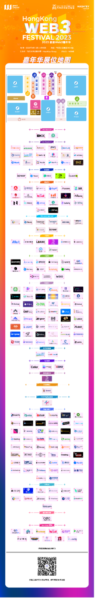 从早期区块链项目,到各层创新应用,2023 香港 Web3 嘉年华不仅汇聚了「Web3 发展史」,更有新晋项目开启新纪元。目前,确认参与嘉年华的 Web3 项目已超过 100 家,他们将在活动现场设置展台,与观众近距离交流和沟通最新的技术和应用。