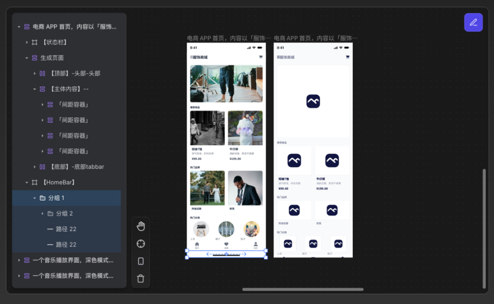每次生成的 UI 界面会按照顺序排布在画板上。你可以用同一套提示词来生成不同的界面,这个跟 AI 绘画工具类似,同一套词每次出来的结果都是不一样的,这是一个很好的方案灵感获取的途径。目前即时 AI 的测试效果来说,我自己的测试结果跟官方的测试报告出来的数据差别不大。对于复杂语义的理解目前还不是特别准确,但是页面的结构和图标的准确度都很高。