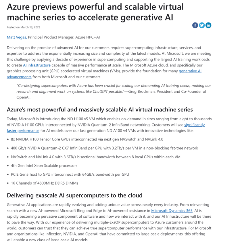 微软此前发布的博客透露了 OpenAI 的 ChatGPT 采用的硬件是基于 NVIDIA 智能网卡和 InfiniBand 200G 网络所做的产品,未来也有意部署 DPU 。