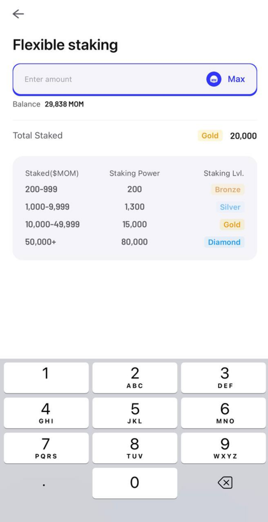 质押\(MOM:前往钱包 - 质押 Stake - 质押\)MOM - [活期质押 Flexible Staking]