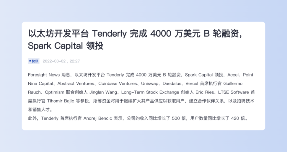 Tenderly 融资信息(图片来源:Foresight News)