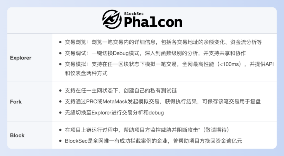 目前,BlockSec 旗下共 3 款产品。除 Phalcon 外,还提供:
