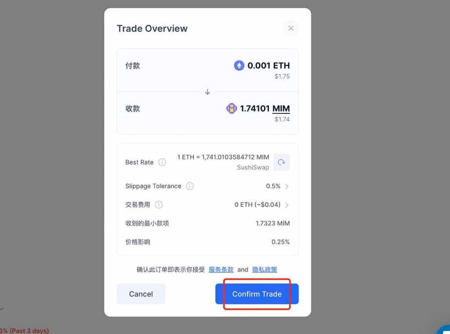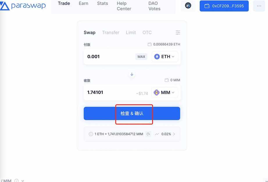 首先在 paraswap 里面兑换一点 mim 币https://app.paraswap.io/(我选择的是 arb 网络)