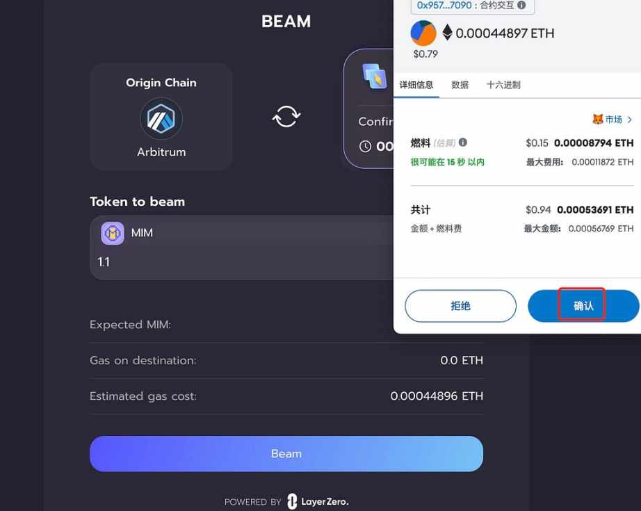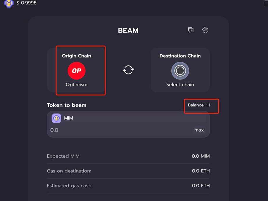 然后打开项目官网https://app.abracadabra.money/#/beam,从 arb 网络跨链