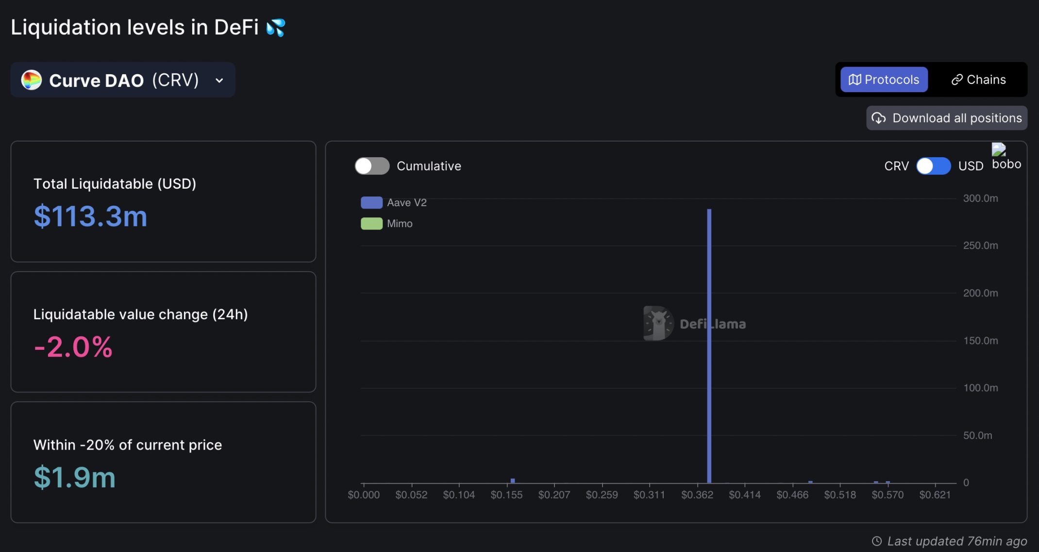 CRV 如果清算,Aave、Frax 等借贷平台都会有潜在的坏账风险。
