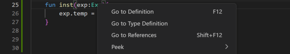 Sui Move Analyzer 包含其他语言插件中的大部分功能,这些功能都可以在编码时轻松调用。要调出上下文菜单,请在编码屏幕中右键单击标识符(例如局部变量或参数名称)上的光标,然后选择一个选项,您将能够看到该标识符的定义、类型定义和参考项。