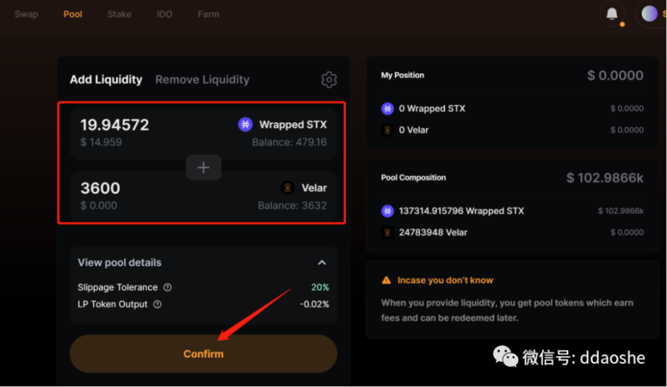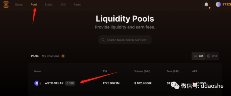 7 添加 lp,点 pool,选择 stx 和 velar 的 lp