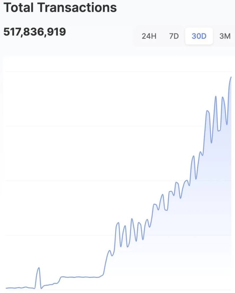 今天,Sui Network 实现了新的里程碑,总交易量突破 5 亿!近三十日的交易量快速攀升!