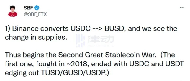 FTX 首席执行官 Sam Bankman-Fried(SBF)认为,Paxos 获得发行稳定币许可的 2018 年,见证了五种稳定币之间发生的「第一次稳定币战争」,在这场竞争中,USDT 和 USDC 胜出,而 TUSD、GUSD 以及 USDP 则相继退出战场。