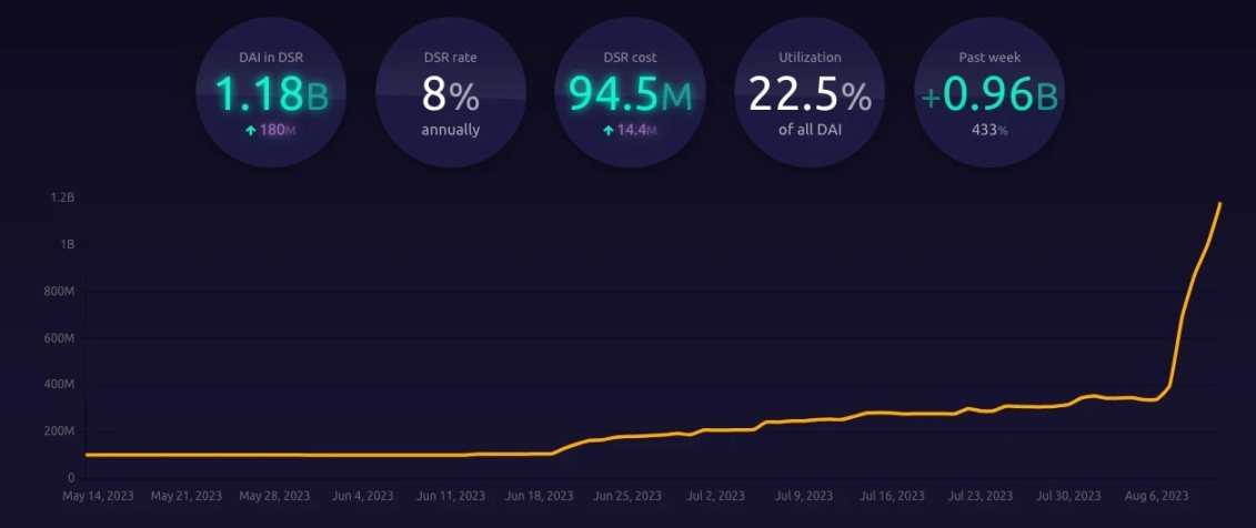不过遗憾的是,8% 的收益率虽香,但结合当前的链上数据以及 MakerDAO 社区意愿来看,这一数字大概率很快就会成为过去式了。