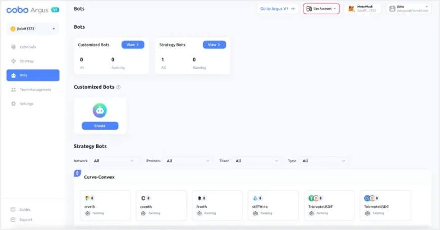 如何用好 Argus 提高 DeFi 效率?可以使用 Argus DeFi Bot 授权到机器人 ---🤖️策略机器人🤖️自定义机器人,操作界面如下所示: