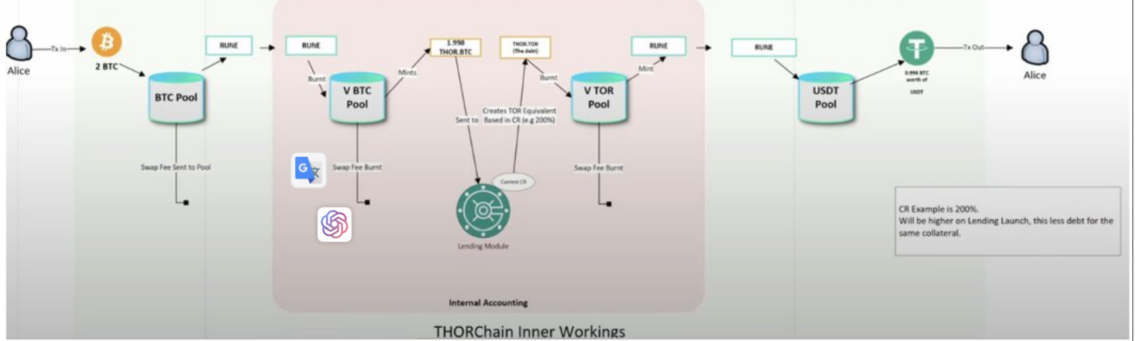 Thorchain 的 Lending 产品单纯从加杠杆角度来说并不是最好的产品,虽然没有借款费用,但多次内部交易费用磨损对用户也不见友好。